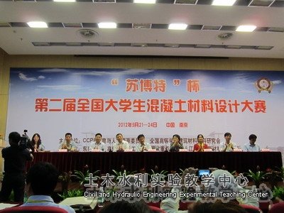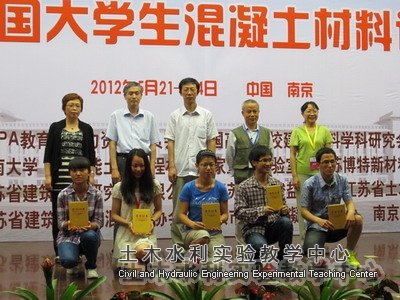 2012年5月21日-24日,“苏博特” 杯第二届全国大学生混凝土材料设计大赛在南京东南大学隆重拉开帷幕。我校参赛队获得团体二等奖,艾红梅老师、吕兴军老师获得优秀指导教师称号。