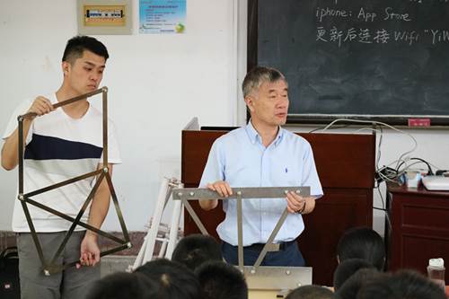 “机构”与“结构”的区别?“光键”与“花键”的区别?造成学生对基本概念理解错误的原因在哪里?“这中间肯定缺点什么”。于是,他开始指导学生做实验模型,做模型成为学生掌握知识的有效方法,而这些模型又可作为下一届学生的课堂教具。经过一届届学生不断丰富,成功搭建了实验结构力学教学平台。所做的课堂教具在2016年第四届全国自制实验教学仪器设备评选中获一等奖,还被推广到其他高校,获批专利20余项。